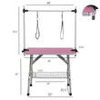 46" Folding Dog Pet Grooming Table Stainless Steel Frame Rubber Mat on Board with Adjustable Arm and Clamps pet dog Cat Grooming Table (PINK COLOR)